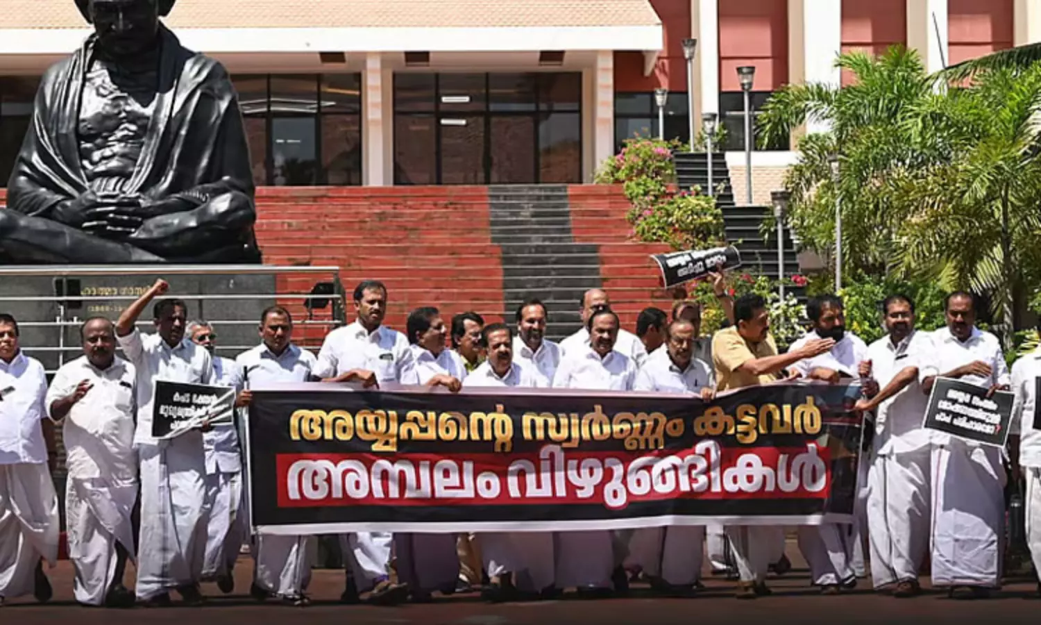 இன்று 2-வது நாளாக சட்டசபை கூடியது. தொடர்ந்து இந்த விவகாரத்தை எதிர்க்கட்சிகள் எழுப்பின. அவர்கள் ,அவையின் நடுவில் பதாகைகளுடன் நின்று ஆர்ப்பாட்டத்திலும் ஈடுபட்டனர். தேவசம்போர்டு மந்திரி பதவி விலக வேண்டும். தேவசம்போர்டு பதவி நீக்கம் செய்யப்பட வேண்டும் என்று வலியுறுத்தினர்.
