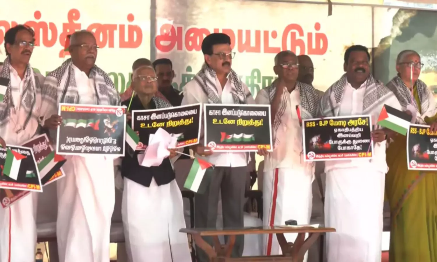 காசா மீது இஸ்ரேல் நடத்தும் தாக்குதலுக்கு எதிராக மார்க்சிஸ்ட் கம்யூனிஸ்ட் கட்சியினர் இன்று கண்டன போராட்டம் நடத்தினர்.