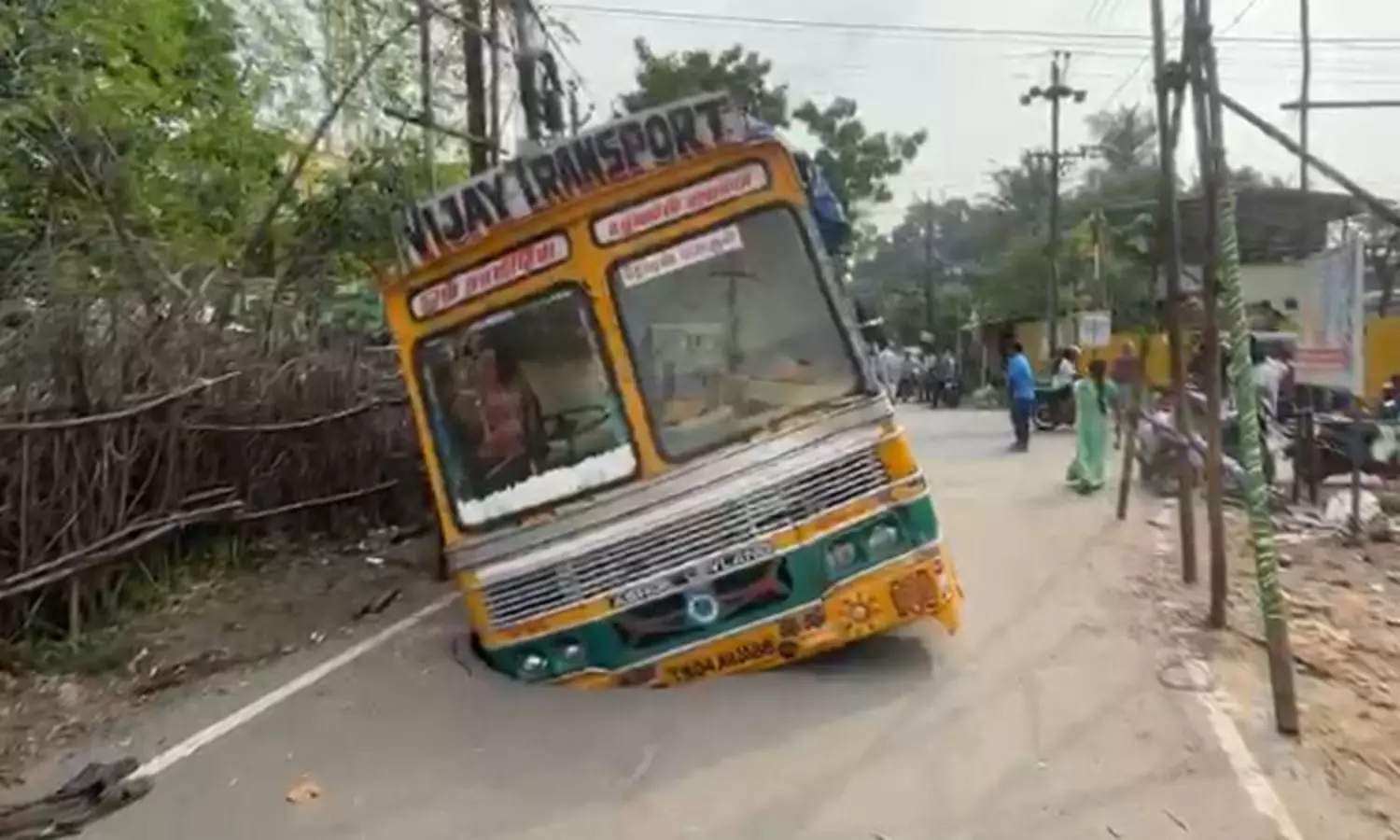 சென்னை அம்பத்தூர் மேனாம்பேடு பிரதான சாலை திடீரென உள்வாங்கியதால் பரபரப்பு ஏற்பட்டது. ரேஷன் கடைகளுக்கு அரிசி பருப்பு எண்ணெய் உள்ளிட்ட பொருட்களை ஏற்றி சென்ற லாரி கவிழ்ந்து விபத்துக்குள்ளானது. லாரி ஓட்டுநர் காயங்களுடன் உயிர்தப்பினார்.