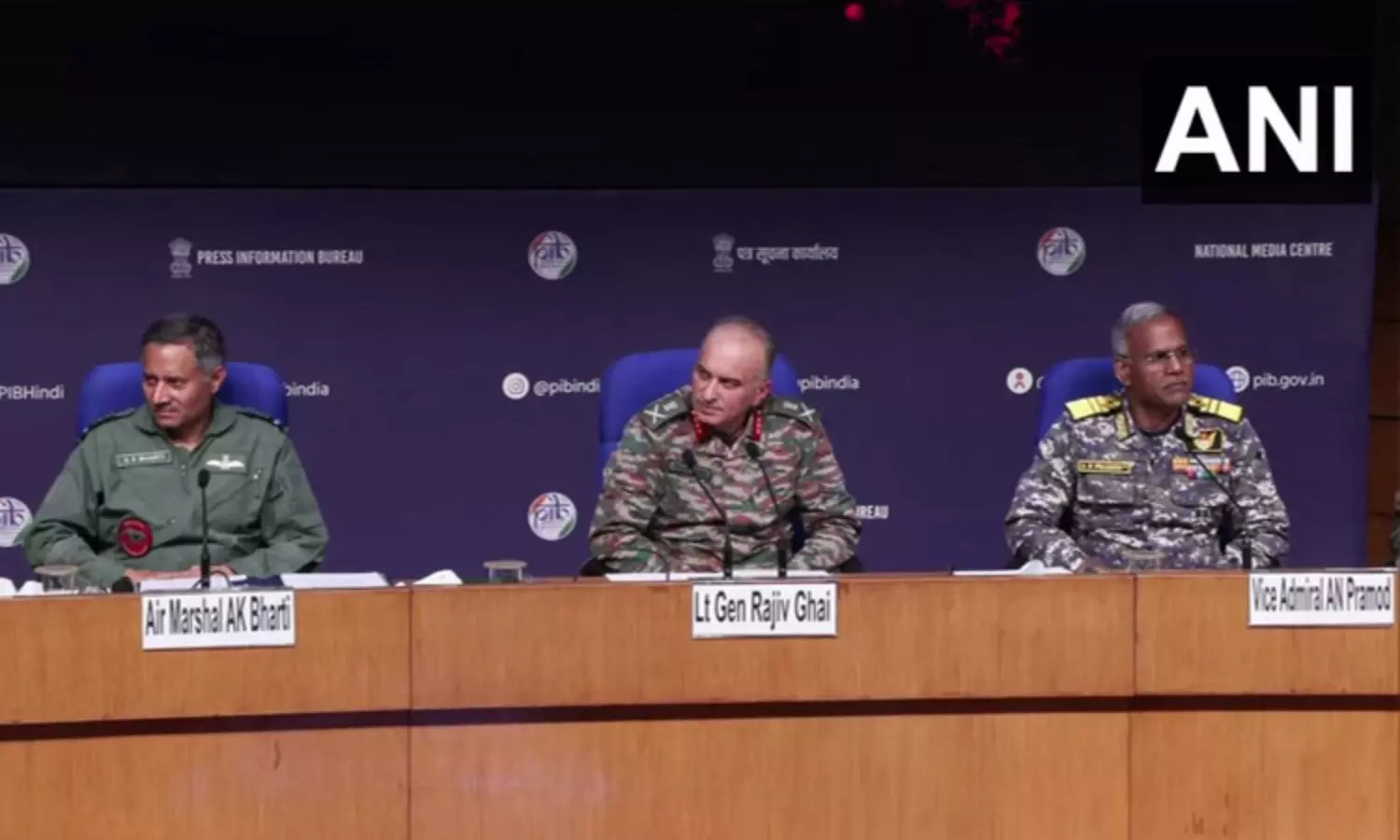 விமானபடையின் ஏர் மார்ஷல் ஏ.கே. பாரதி, இந்திய ராணுவத்தின் லெப்டினன்ட் ஜெனரல் ராஜீவ் காய் மற்றும் கடற்படையின் வைஸ் அட்மிரல் ஏ.என். பிரமோத் ஆகிய முப்படைகளின் டி.ஜி.எம்.ஓ.க்கள் இன்று கூட்டாக நிருபர்களை சந்தித்து, ஆபரேஷன் சிந்தூர் தொடர்பாக பேட்டியளித்து வருகின்றனர்.