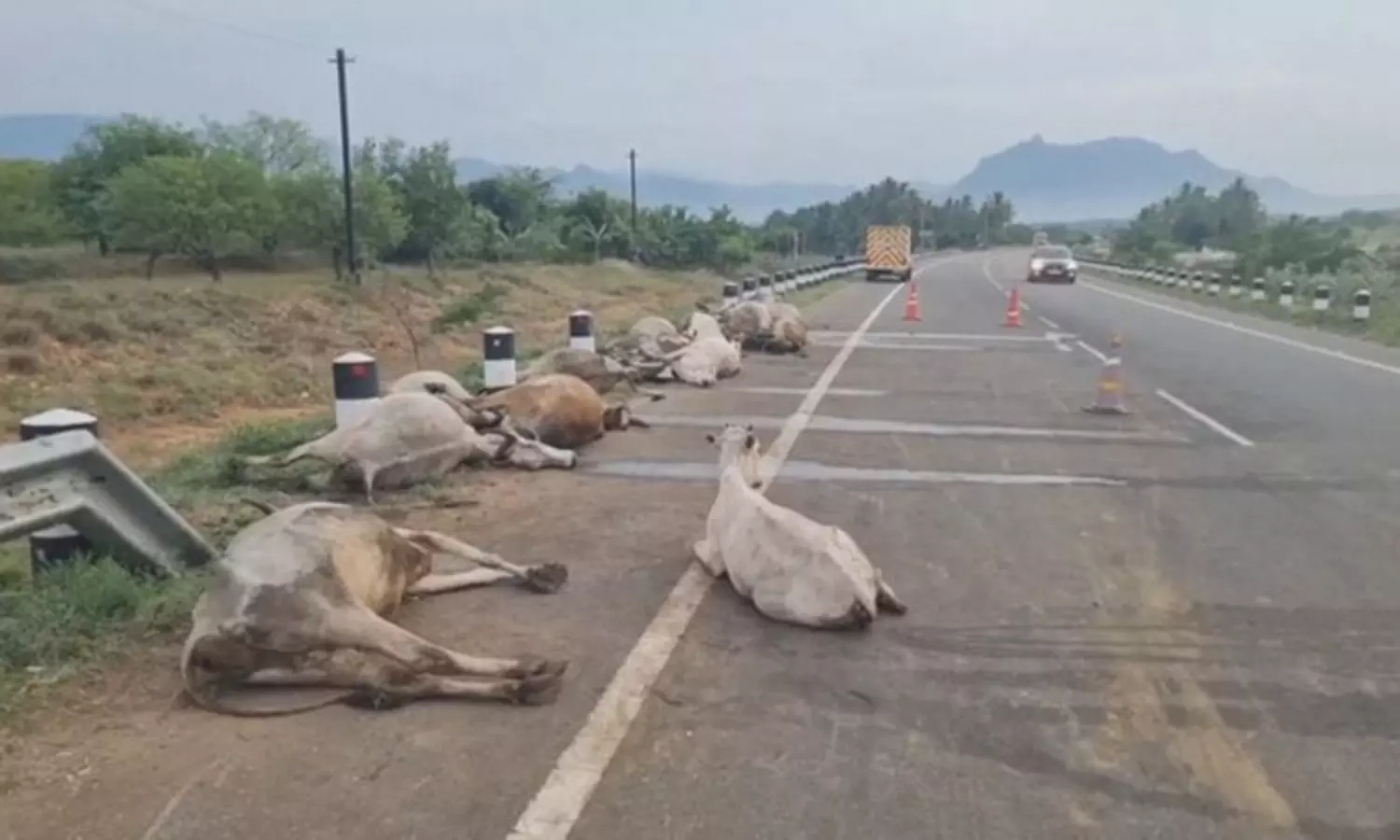 தேனி: நேற்றிரவு டி.கள்ளிப்பட்டி அருகே திண்டுக்கல் பைபாஸ் சாலையைக் கடந்த தொழு மாடுகள் மீது அரசுப் பஸ் மோதிய விபத்தில் 18 மாடுகள் உயிரிழந்தது. 20க்கும் மேற்பட்ட மாடுகள் காயம் அடைந்தது.