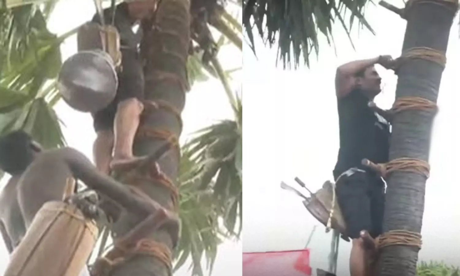 கள் இறக்கும் போராட்டம்.. பனை மரம் ஏறிய சீமான்