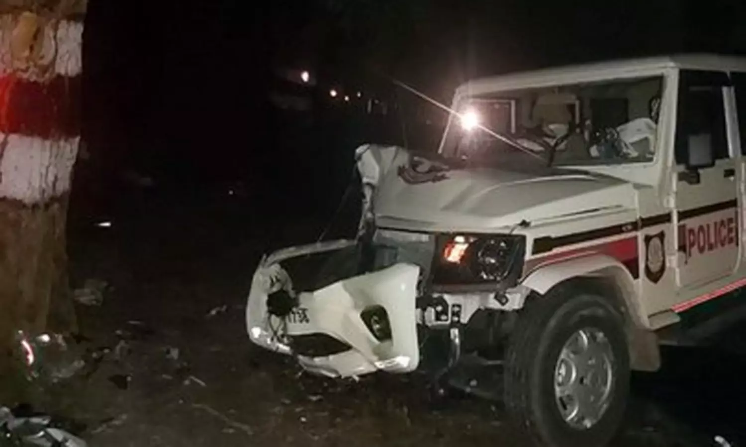 போலீஸ் வாகனம் மரத்தில் மோதி ஆய்வாளர் காயம்