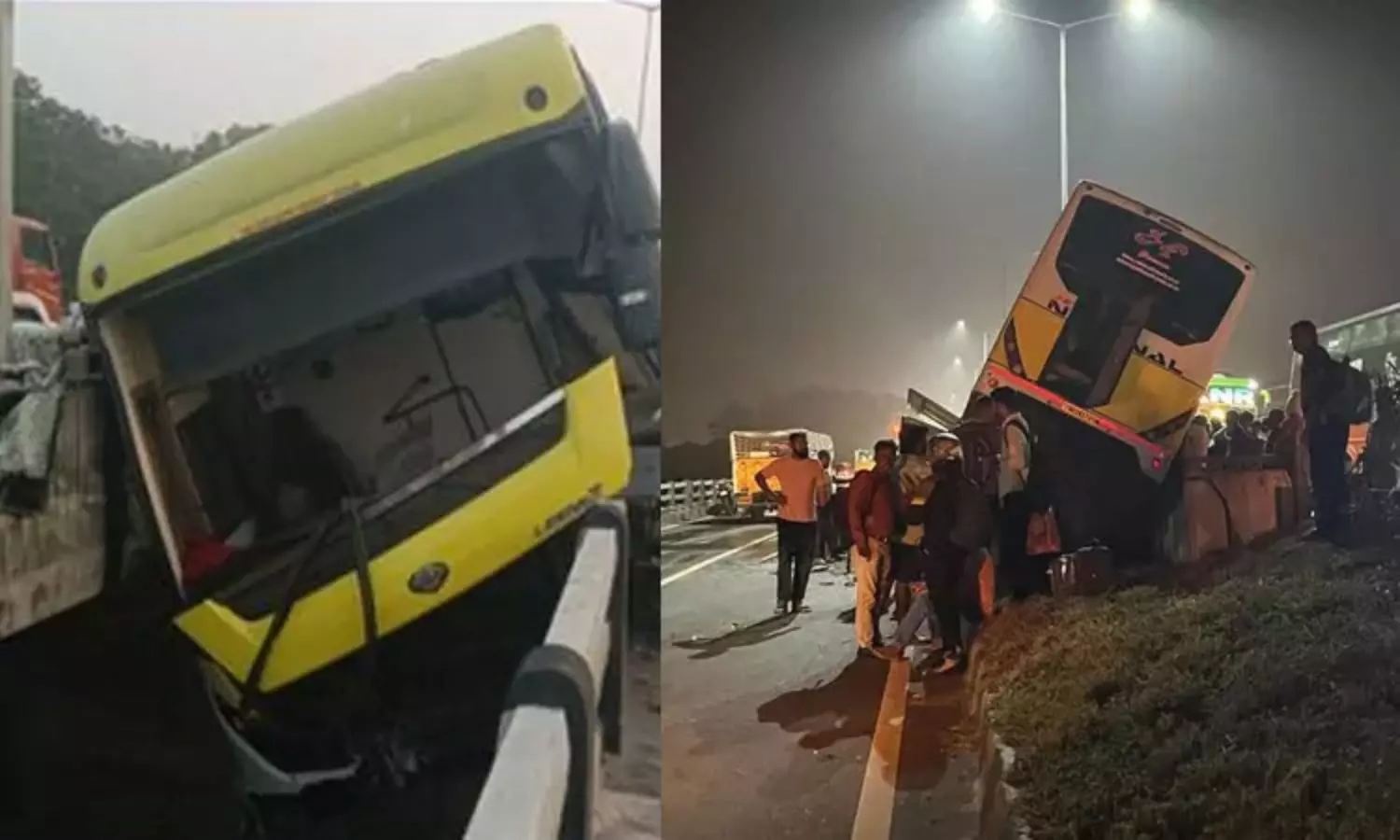 அதிவேகமாகச் சென்ற ஆம்னி பேருந்து டிரைவரின் கட்டுப்பாட்டை இழந்து பாலத்தின் மைய தடுப்புச் சுவரில் மோதி விபத்துக்குள்ளானது.