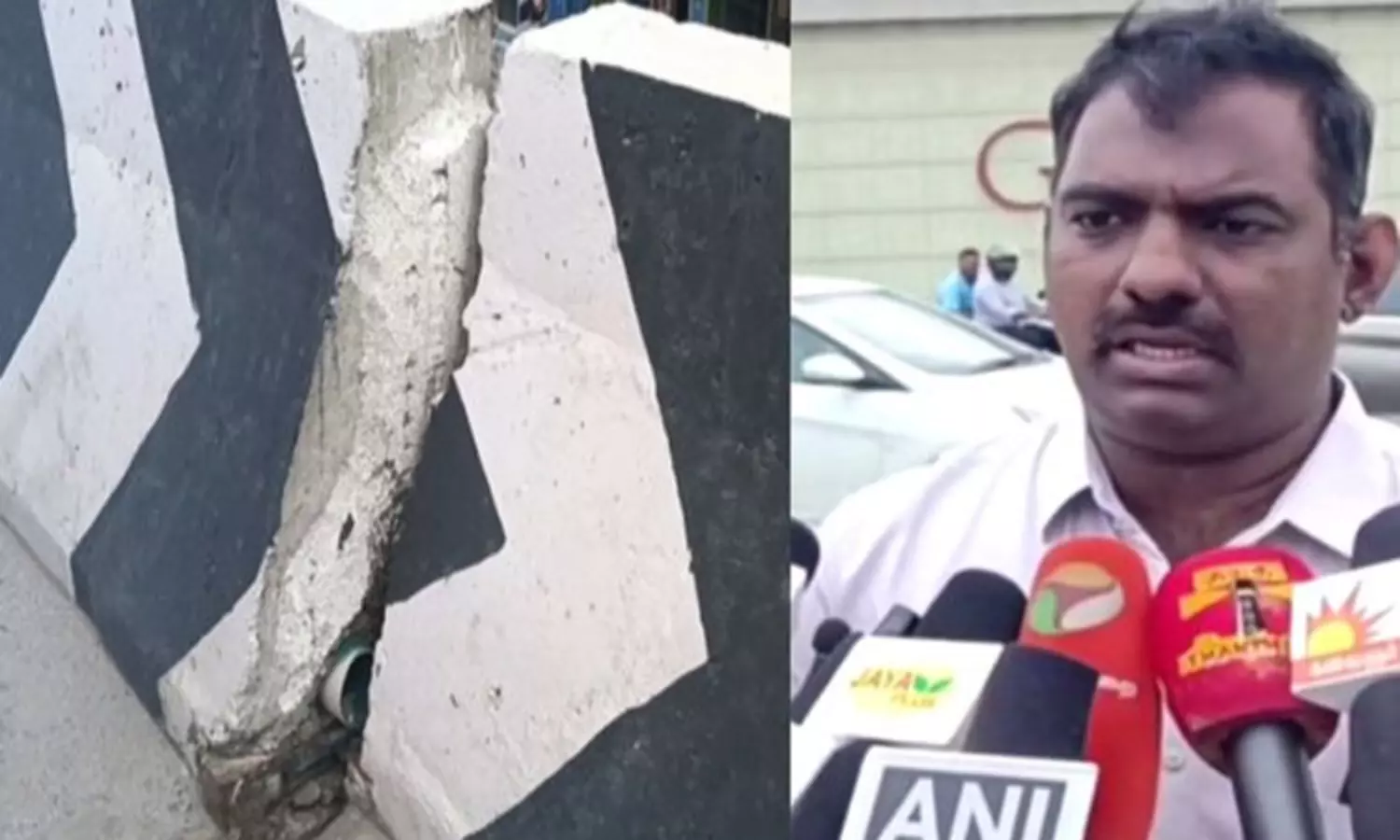 தேசிய நெடுஞ்சாலை மேம்பாலத்தில் பழுது - கலெக்டர் ஆய்வு