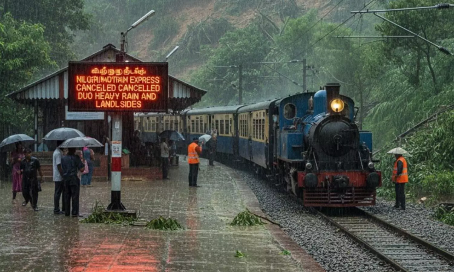 கனமழை, மண் சரிவு காரணமாக ஏற்கனவே கடந்த 3 நாட்களாக மேட்டுப்பாளையம் - ஊட்டி மலை ரயில் சேவை ரத்து செய்யப்பட்டிருந்தது. தொடர்ந்து மழைபெய்து ரயில் பாதைகளில் பாறைகள் விழுந்துள்ளதால், நான்காவது நாளாக இன்றும் (22.10.205) மலை ரெயில் சேவை ரத்து செய்யப்படுவதாக தெற்கு ரெயில்வே நிர்வாகம் அறிவித்துள்ளது