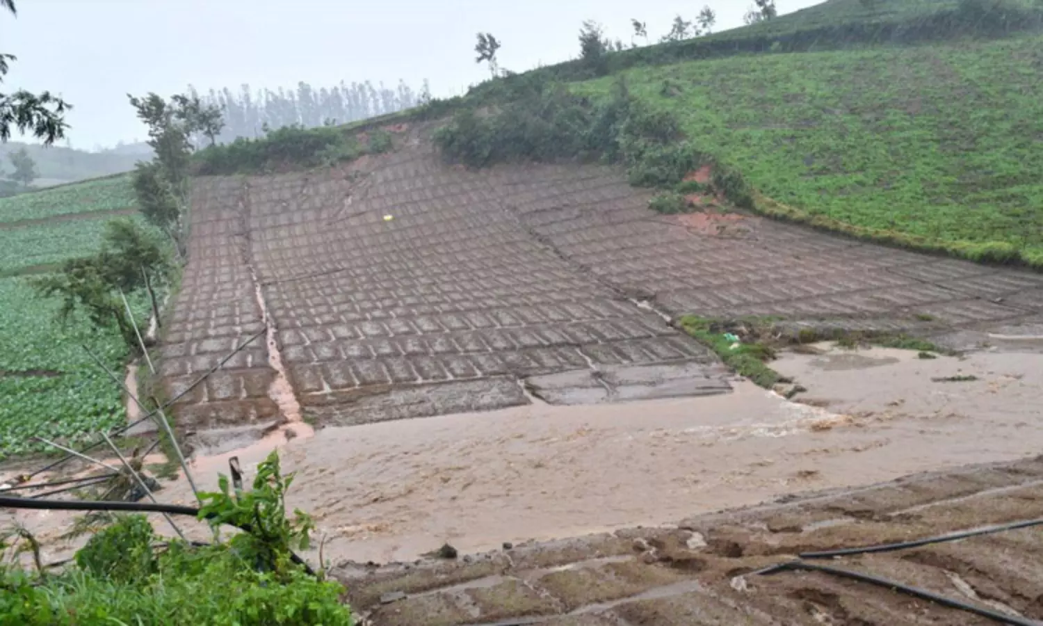 நீலகிரி: கோத்தகிரியில் பெய்த கனமழையால் ஆற்றில் வெள்ளப்பெருக்கு ஏற்பட்டு விளைநிலங்களுக்குள் புகுந்த மழைநீர். கேரட், பூண்டு உள்ளிட்ட காய்கறிகள் அழுகி சேதம் அடைந்துள்ளதாக விவசாயிகள் வேதனை அடைந்துள்ளனர்.