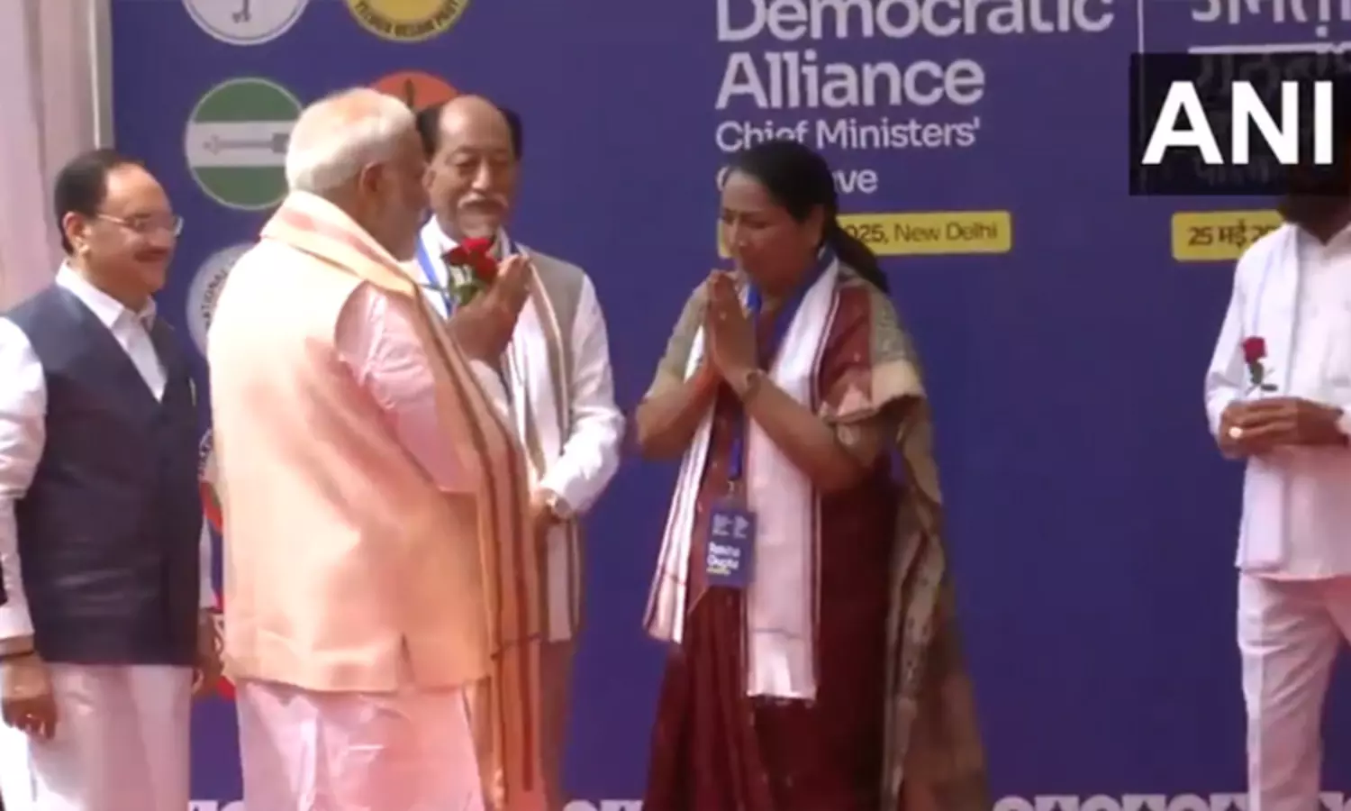 அவரை அக்கட்சியின் தேசிய தலைவர் ஜே.பி. நட்டா வரவேற்றார். இதேபோன்று, அக்கட்சியை சேர்ந்த டெல்லி முதல்-மந்திரியான ரேகா குப்தா, மராட்டிய துணை முதல்-மந்திரி ஏக்நாத் ஷிண்டே உள்ளிட்டோர் வரவேற்றனர்.