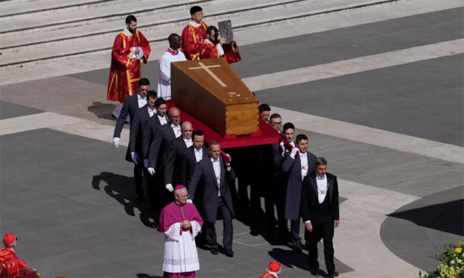 மறைந்த கத்தோலிக்க கிறிஸ்தவ மதத் தலைவர் போப் பிரான்சிஸ் (88) உடல் சற்று நேரத்தில் வாடிகனுக்கு வெளியே உள்ள புனித மேரி மேஜர் பசிலிக்கா பேராலயத்தில் நல்லடக்கம் செய்யப்படுகிறது.