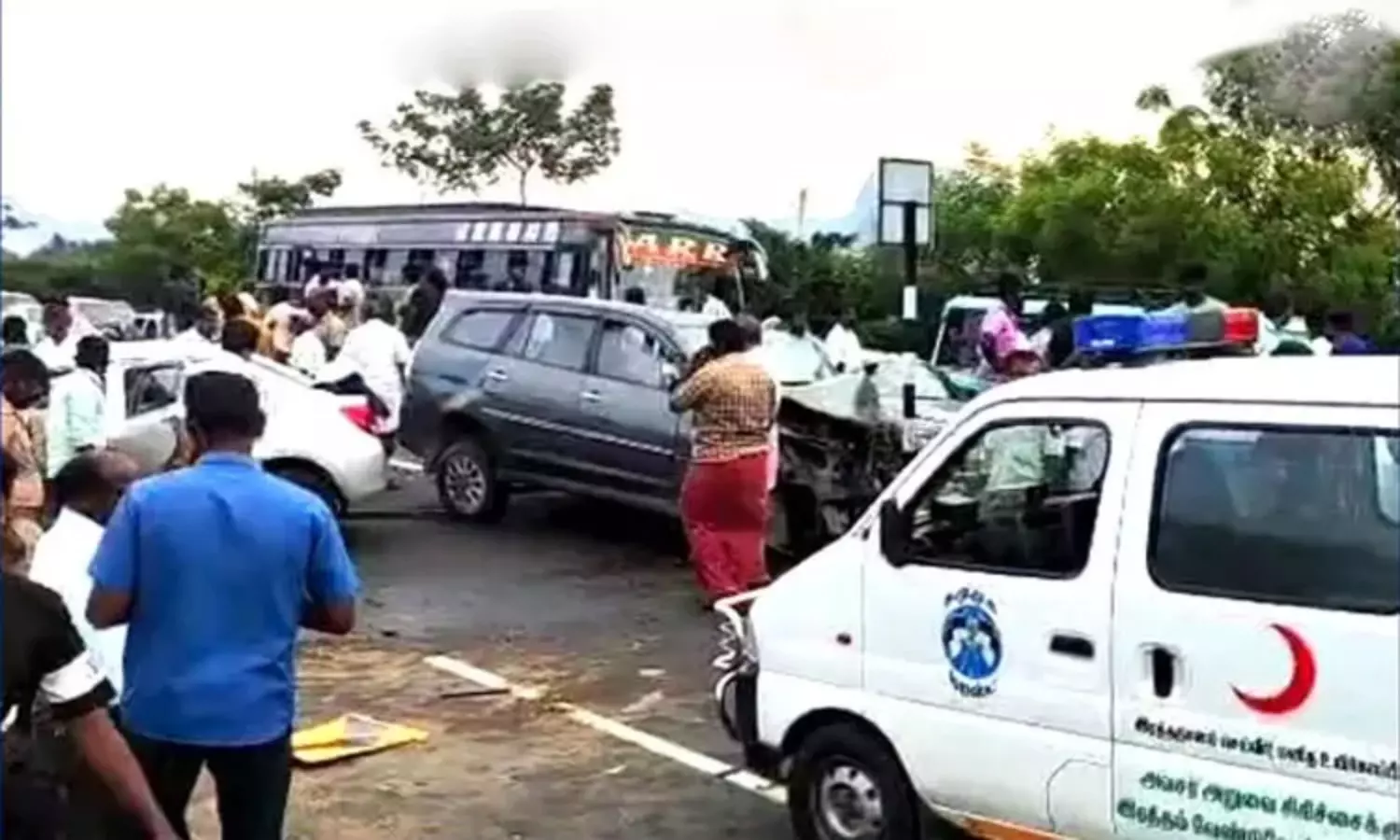 இந்த கோர விபத்தில் விபத்தில் 4 பேர் சம்பவ இடத்திலேயே உயிரிழந்தனர்.