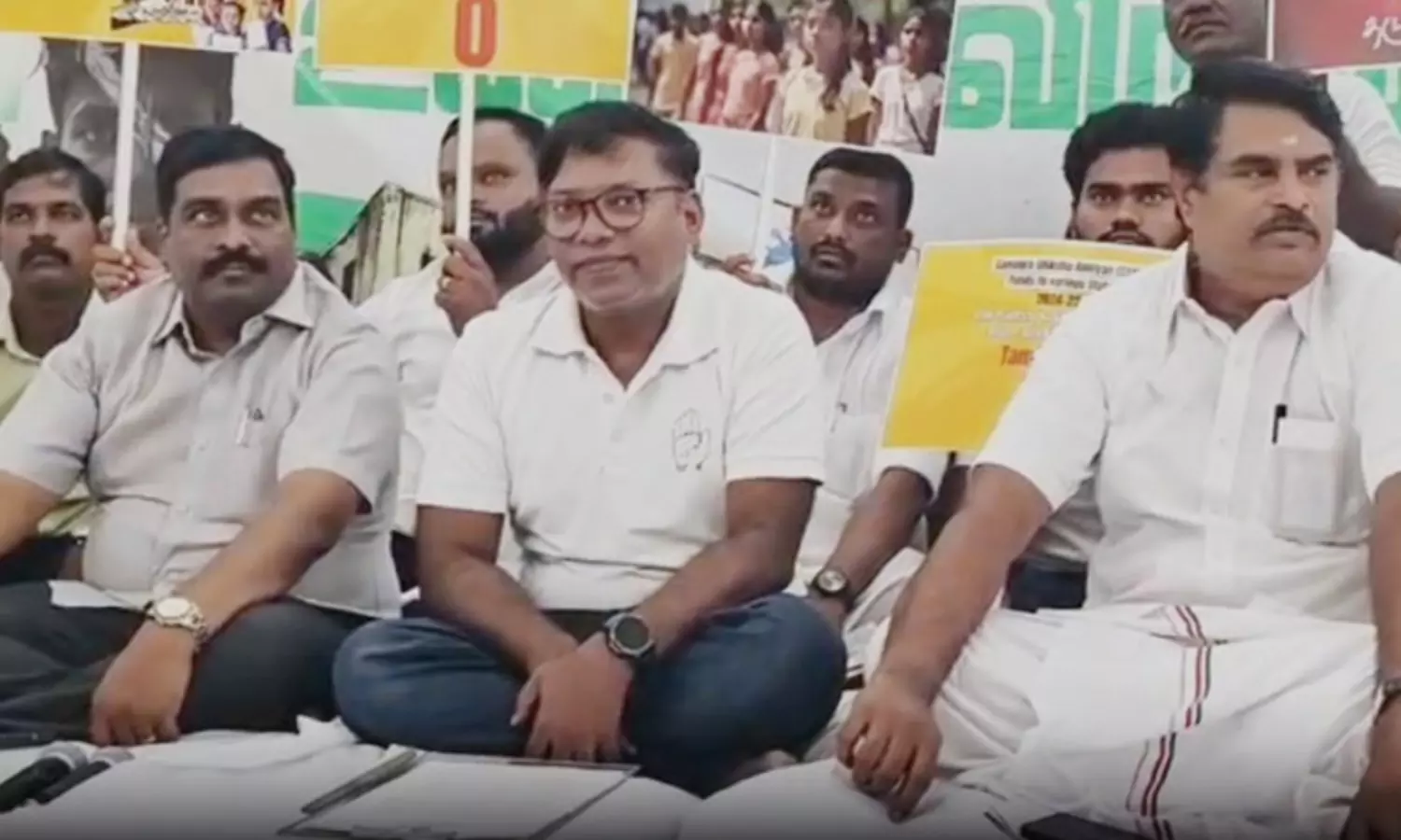 மத்திய பாஜக அரசு தமிழக மாணவர்களுக்கு வழங்கும் கல்வித் தொகையை வழங்காததை கண்டித்து திருவள்ளூர் எம்.பி சசிகாந்த் செந்தில் காங்கிரஸ் நிர்வாகிகளுடன் இன்று திருவள்ளூரில் காலவரையற்ற உண்ணாவிரதப் போராட்டத்தை தொடங்கினார்.