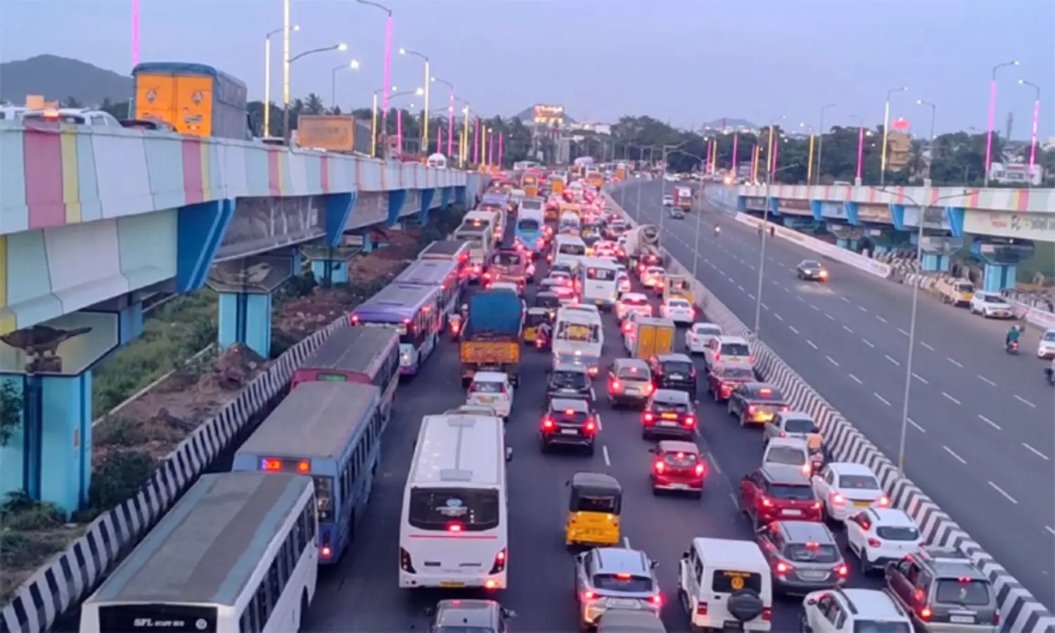 தாம்பரம் பெருங்களத்தூர் ரயில்வே பாலம் அருகே வாகன சுரங்கப்பாதை அமைப்பதற்கான பணிகள் நடைபெற்று வருவதால் கடும் போக்குவரத்து நெரிசல். 2 கி.மீ. தூரத்திற்கு வாகனங்கள் அணிவகுத்து நிற்பதால் மக்கள் அவதி அடைந்துள்ளனர்.