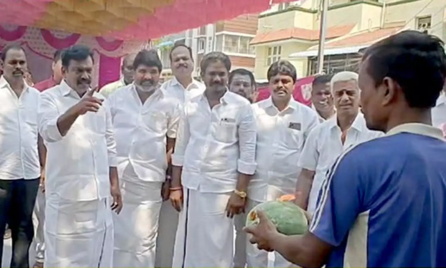 சென்னை அடுத்த காட்டுப்பாக்கத்தில் சமுதாய நலக்கூடம் அமைக்க பூமி பூஜை நடந்தது. இதில், வடமாநில தொழிலாளி ஒருவர் பூமி பூஜையின்போது, கற்பூரம் ஏற்றி பூசணிக்காயை உடைக்க முற்பட்டார். அப்போது, பூசணிக்காயை எப்படி சுற்ற வேண்டும் என பூந்தமல்லி எம்.எல்.ஏ. அவருக்கு இந்தியில் சொல்லிக் கொடுத்து, அதன்படி சுற்ற செய்துள்ளார்.