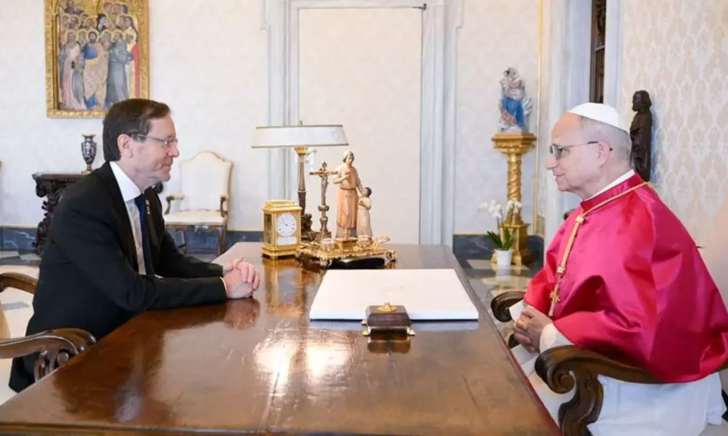 இஸ்ரேல் ஜனாதிபதி ஈசாக் ஹெர்ஜாக் இன்று 14-ம் போப் லியோவை நேரில் சந்தித்து பேசினார். இதற்காக, வாகன அணிவகுப்பு மற்றும் பலத்த பாதுகாப்புடன் அபோஸ்தலிக் அரண்மனைக்கு ஹெர்ஜாக் சென்று சேர்ந்துள்ளார்.