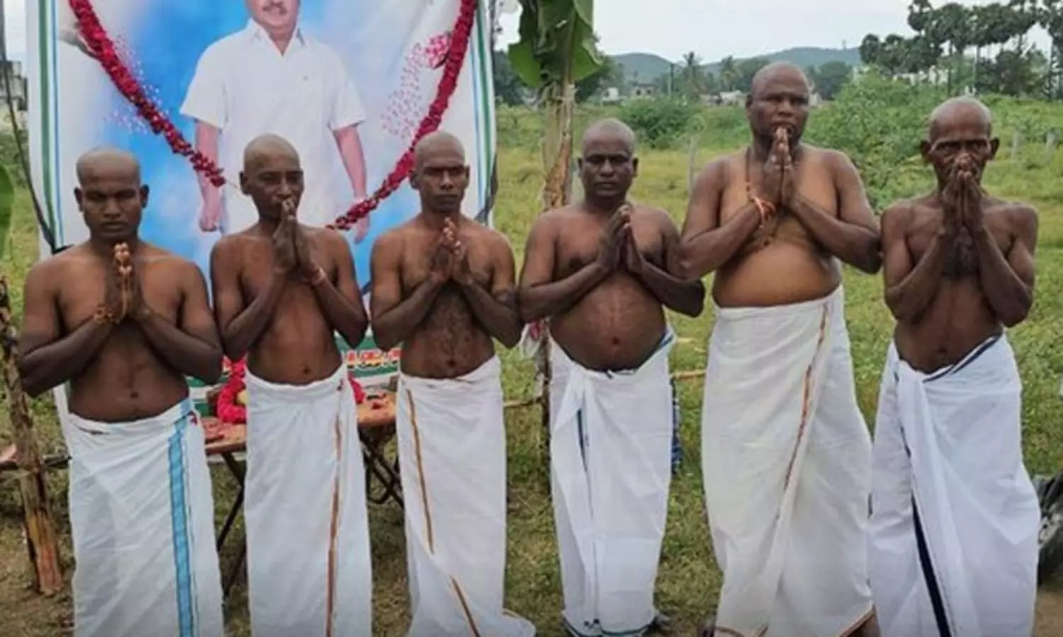 மொட்டையடித்து கேப்டனுக்கு இறுதி அஞ்சலி செலுத்திய தேமுதிக சேலம் வாழப்பாடி தொண்டர்கள்...!