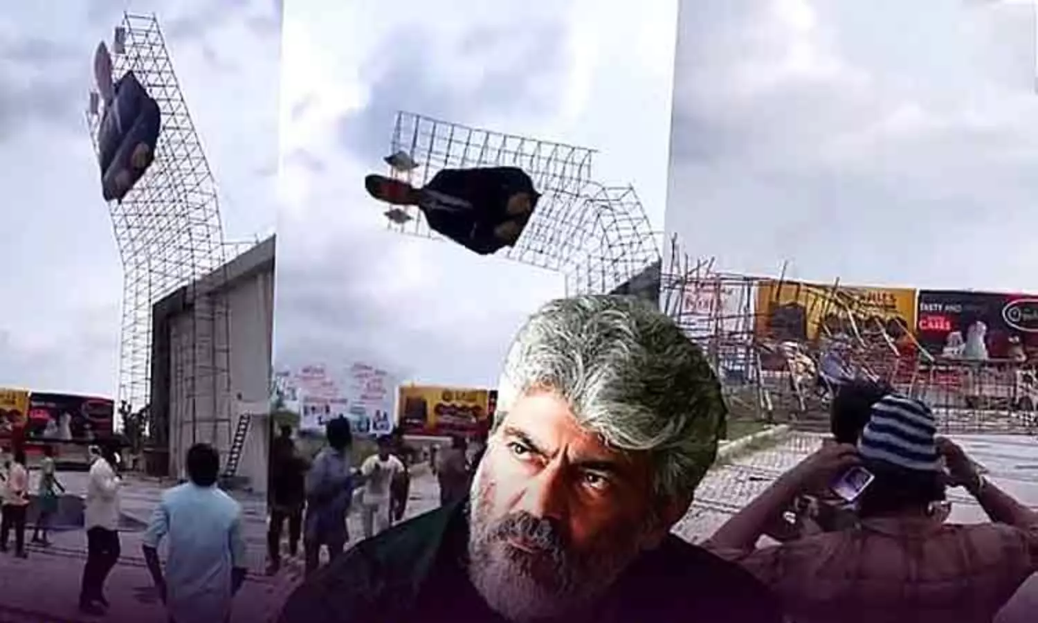 சரிந்து விழுந்த அஜித்தின் 200 அடி உயர கட் அவுட் - வீடியோ வைரல்
