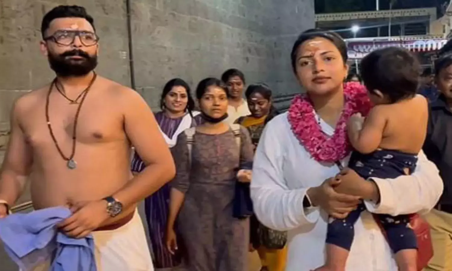 திருவண்ணாமலை அருணாசலேஸ்வரர் கோவிலுக்கு தனது குழந்தை மற்றும் குடும்பத்துடன் நடிகை அமலா பால் சாமி தரிசனம் செய்தார்.;