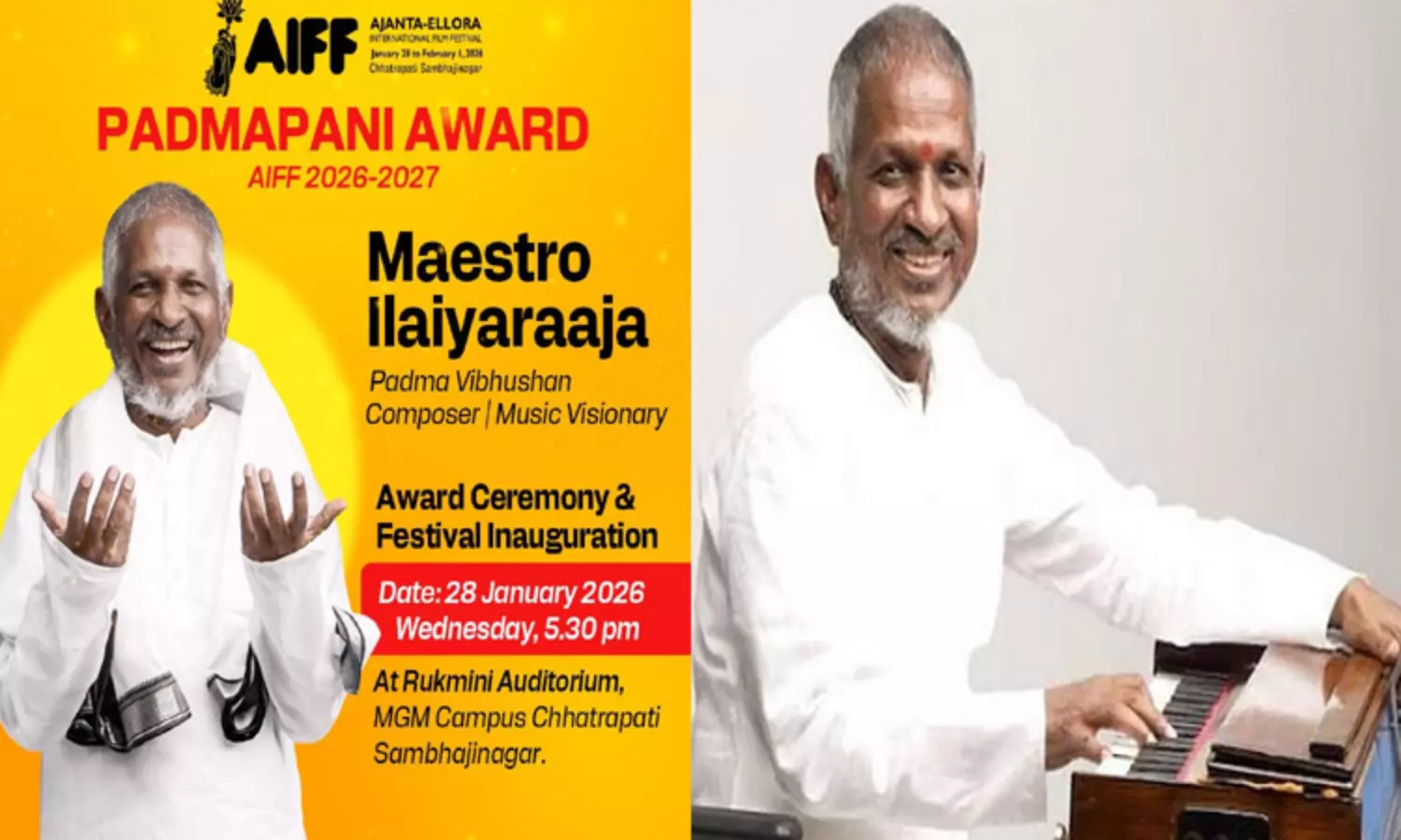இளையராஜாவுக்கு அஜந்தா- எல்லோரா சர்வதேச திரைப்பட விழாவில் பத்மபாணி விருது வழங்கப்பட உள்ளது.;