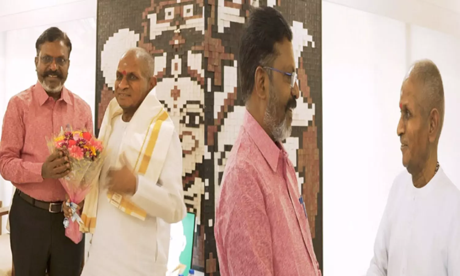 இந்நிலையில், விடுதலைச் சிறுத்தைகள் கட்சியின் தலைவர் திருமாவளவன் இளையராஜாவின் அலுவலகத்திற்கு நேரில் சந்தித்து வாழ்த்து தெரிவித்துள்ளார்.