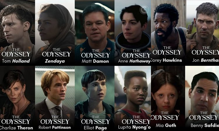 இதில், மேட் டாமன் ஒடிஸியஸாக நடிக்கிறார். மேலும், டாம் ஹாலண்ட், ஆன் ஹாத்வே, ஜெண்டயா, லூபிடா நியோங்கோ, ராபர்ட் பாட்டின்சன், சார்லிஸ் தெரோன், ஜான் பெர்ன்தால், பென்னி சப்டி, ஜான் லெகுய்சாமோ மற்றும் எலியட் பேஜ் ஆகியோரும் நடிக்கின்றனர்.