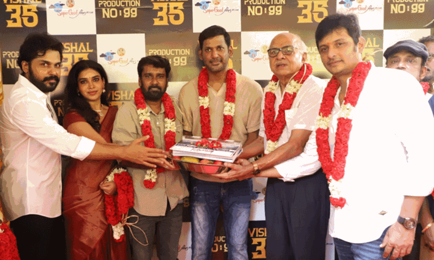 இந்த நிலையில் இந்த படத்திற்கான பூஜை இன்று நடைபெற்றது. அதில் நடிகர்கள் சித்தார்த் மற்றும் கார்த்தி கலந்து கொண்டனர். இந்த இப்படத்தின் முதற்கட்ட படப்பிடிப்பு பணிகள் சென்னையில் 45 நாட்களுக்கு நடைபெறவுள்ளது. படத்தின் பூஜையின் போது எடுத்த புகைப்படங்களை நடிகர் விஷால் தனது எக்ஸ் தளத்தில் பகிர்ந்துள்ளார்.