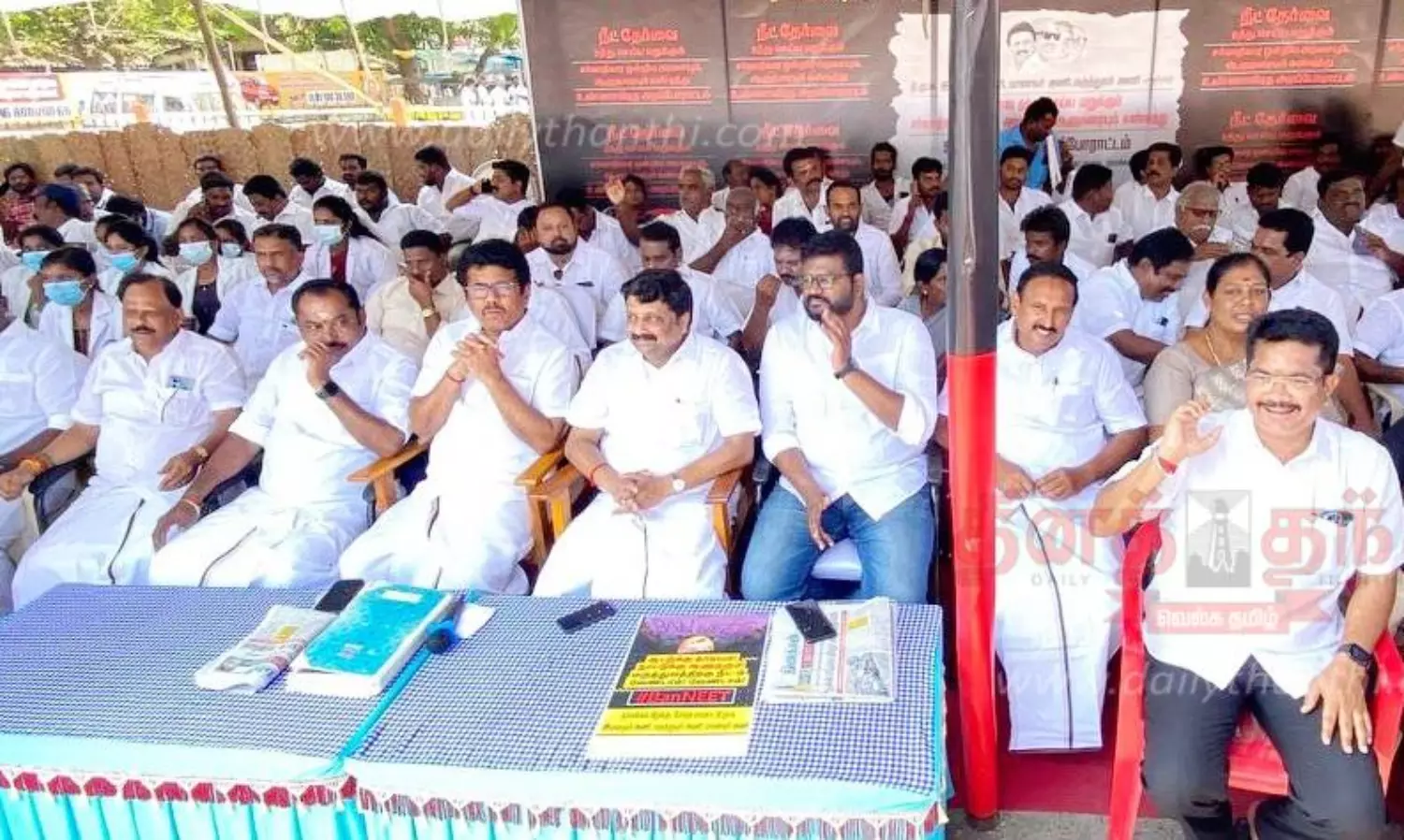 மாணவர்களை சிதைக்கும் உயிர் கொல்லியான நீட் தேர்வில் இருந்து விளக்கைப் பெற்றே தீருவோம் என இளைஞர் நலன் மற்றும் விளையாட்டு துறை அமைச்சர் உதயநிதி ஸ்டாலின் கூறியுள்ளார். அதற்கான முயற்சியின் ஒரு பகுதியாகவே இன்று உண்ணாவிரத போராட்டம் நடைபெற்றது.