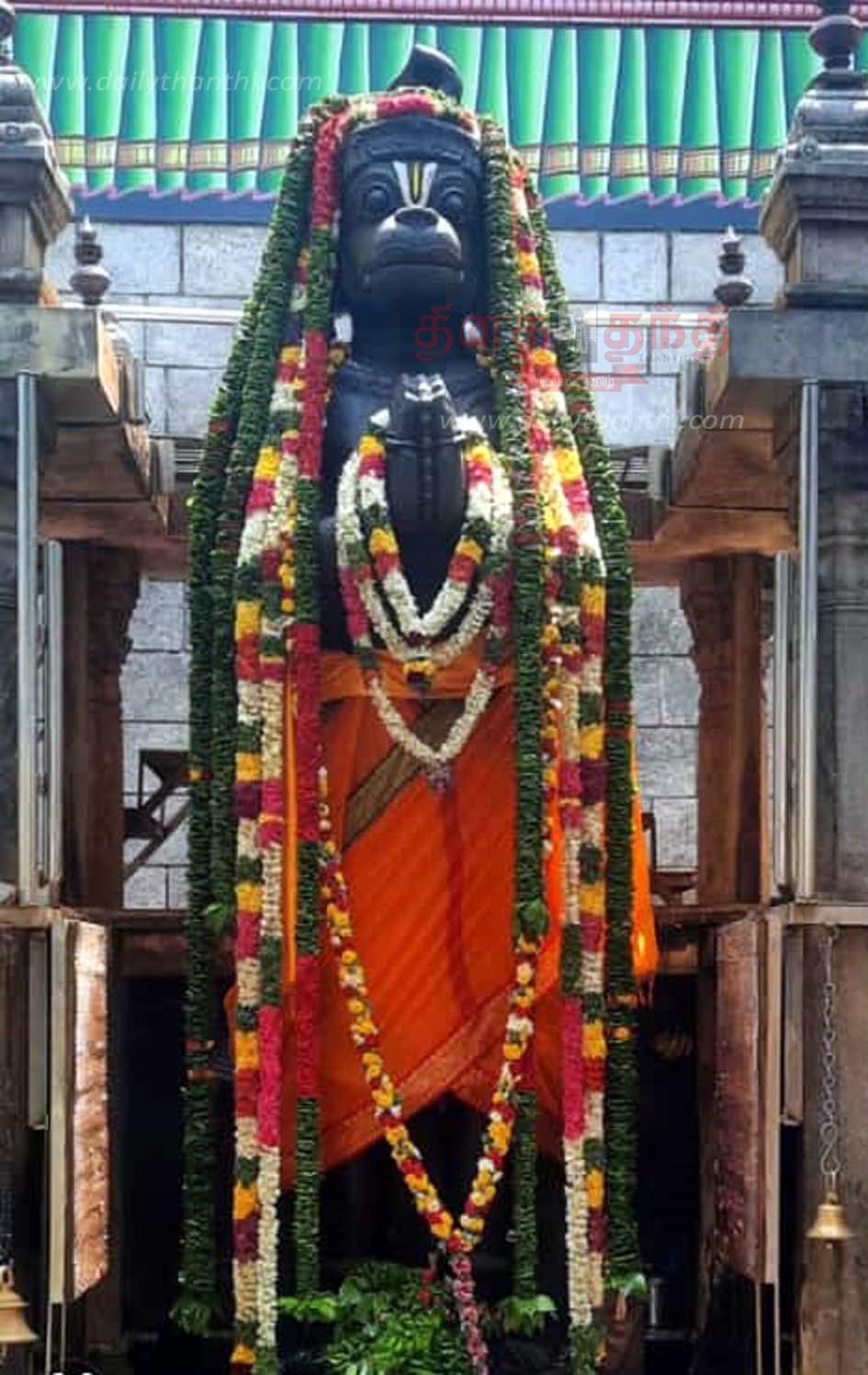 இதையொட்டி அதிகாலையில் நடை திறக்கப்பட்டு, சாமிக்கு 1,008 வடைமாலை சாத்தப்பட்டது. பின்னர் பால், எண்ணெய், பஞ்சாமிர்தம், மஞ்சள், சீயக்காய் உள்ளிட்ட நறுமண பொருட்களால் ஆஞ்சநேயருக்கு சிறப்பு அபிஷேகம் செய்யப்பட்டது. இறுதியாக மலர் அலங்காரத்தில் ஆஞ்சநேயர் பக்தர்களுக்கு அருள்பாலித்தார். இதில் திரளான பக்தர்கள் கலந்து கொண்டு சாமிதரிசனம் செய்தனர்.