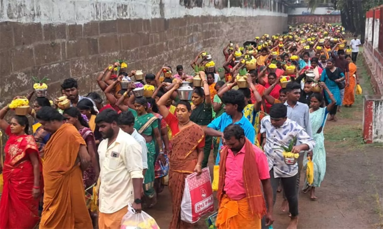 தாழக்கோவில் பக்தவசலேஸ்வரர் திருக்கோவில் வளாகத்தில் இருந்து புறப்பட்ட ஊர்வலம், தாழக்கோவில் கோபுர வாசல் வழியாக வந்து சன்னதி தெரு, அடிவார வீதி வழியாக மலை அடிவாரத்தை அடந்தது. அதனை தொடர்ந்து பக்தர்கள் 500-க்கும் மேற்பட்ட படிக்கட்டுகளை கடந்து மலைகோவிலை அடைந்து, மூலவர் வேதகிரீஸ்வருக்கு,1008 பால்குடங்களில் உள்ள பாலால் அபிஷேகம் செய்தனர். அதனை தொடர்ந்து அனைவருக்கும் பிரசாதம் வழங்கப்பட்டது.