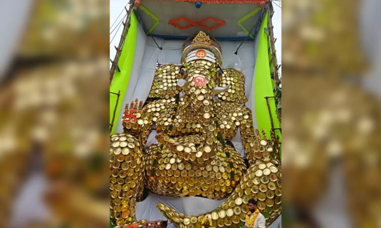 சென்னை: பித்தளை தாம்பாளங்களால் உருவாக்கப்பட்ட பிரம்மாண்ட விநாயகர் சிலை