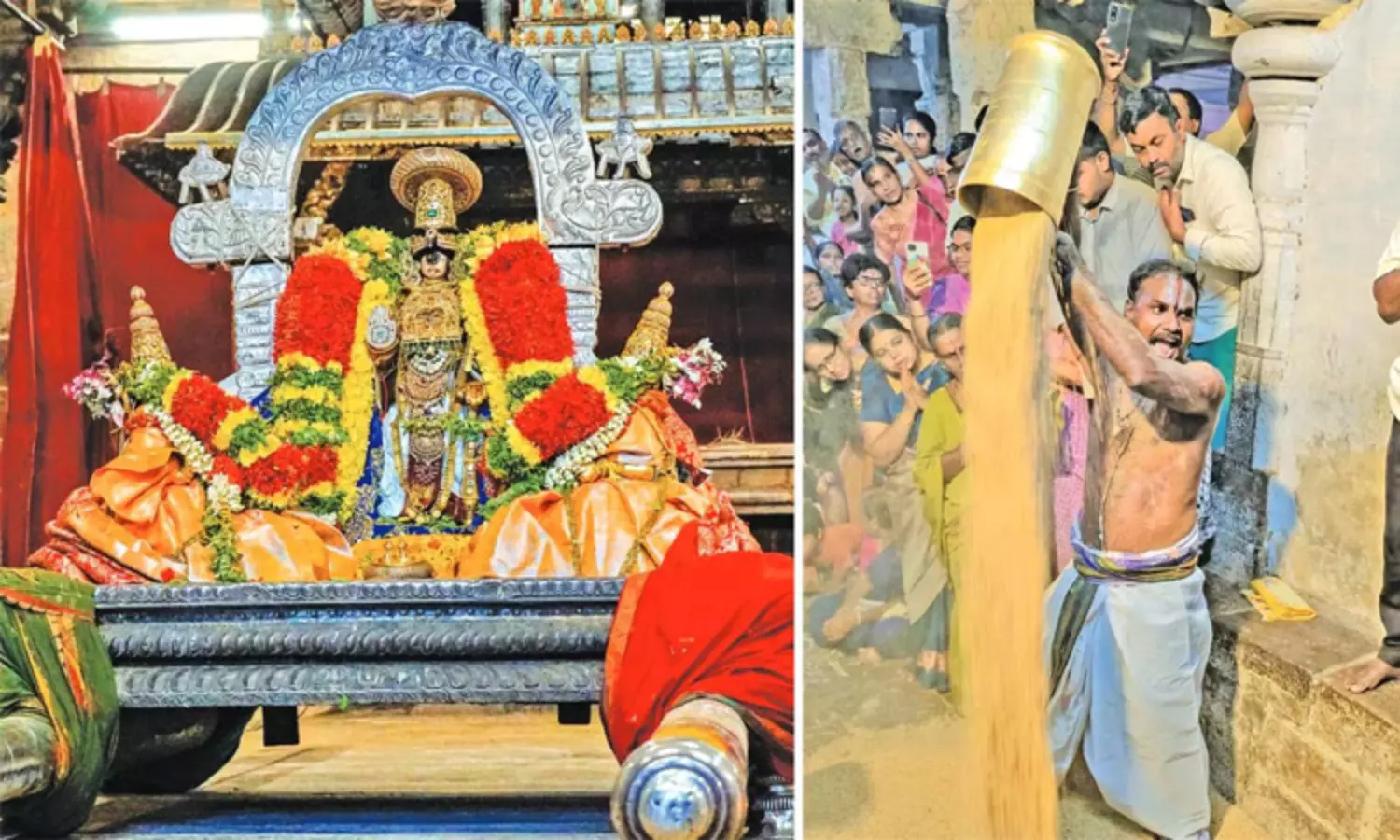 சித்திரைத் தேர் திருவிழாவின் ஏழாம் நாளில் நம்பெருமாள் உபயநாச்சியார்களுடன் திருச்சிவிகையில் புறப்பட்டு நெல்லளவு கண்டருளினார்.;