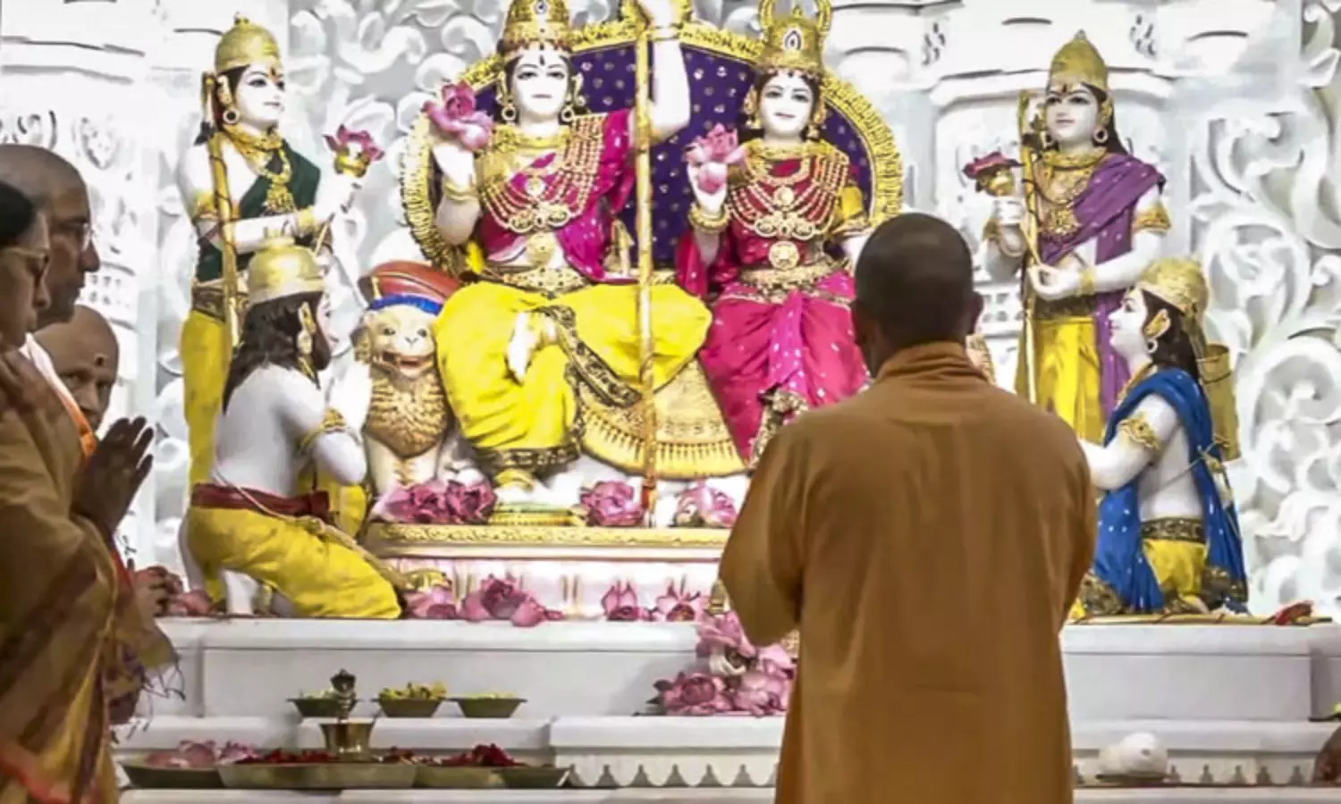 விழாவில் உத்தரபிரதேச முதல்-மந்திரி யோகி ஆதித்யநாத் கலந்துகொண்டு ராமர்-சீதை சிலைக்கு ஆரத்தி காட்டி வழிபட்டார். இந்த விழாவில் குறிப்பிட்ட அளவு பக்தர்கள் மட்டுமே கலந்து கொண்டனர். விழாவையொட்டி கோவில் முழுவதும் மலர்களால் அலங்கரிக்கப்பட்டு இருந்தது.