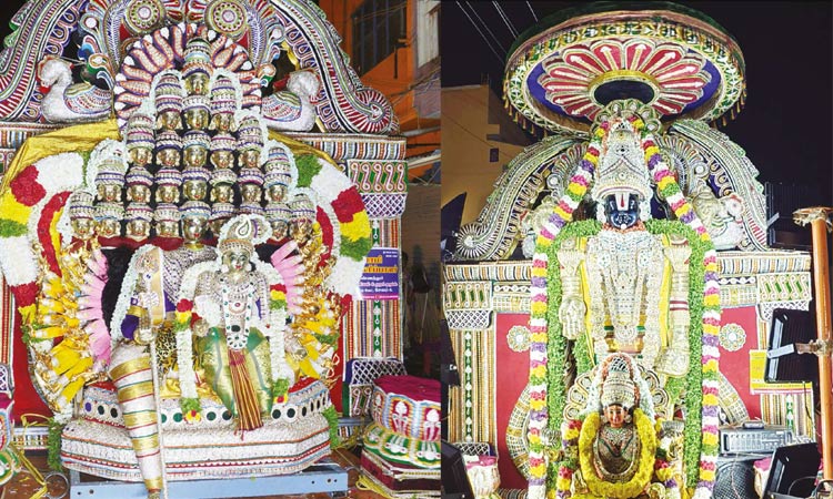 பூப்பல்லக்குகள் வீதியுலாவின்போது ஆயிரக்கணக்கான பக்தர்கள் சாமி தரிசனம் செய்தனர்.;
