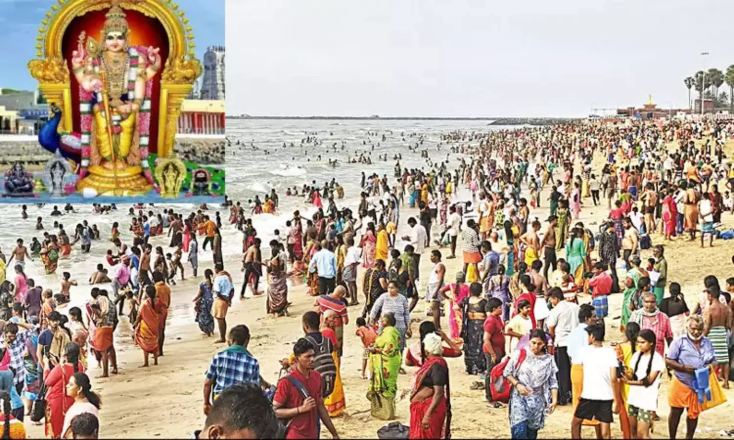 ஏராளமான பக்தர்கள் வருகை தந்துள்ளதால், கோவில் வளாகம், கடற்கரைப் பகுதி, நாழி கிணறு, முக்கிய சாலைகள் முழுவதும் பக்தர்களால் நிறைந்து காணப்படுகிறது. பக்தர்களின் கூட்டம் அதிகரித்து காணப்படும் நிலையில், கோவில் நிர்வாகம் சார்பில் சிறப்பு ஏற்பாடுகள் செய்யப்பட்டுள்ளன. மேலும், போலீசார் பாதுகாப்பு பணியில் ஈடுபட்டு வருகின்றனர்.