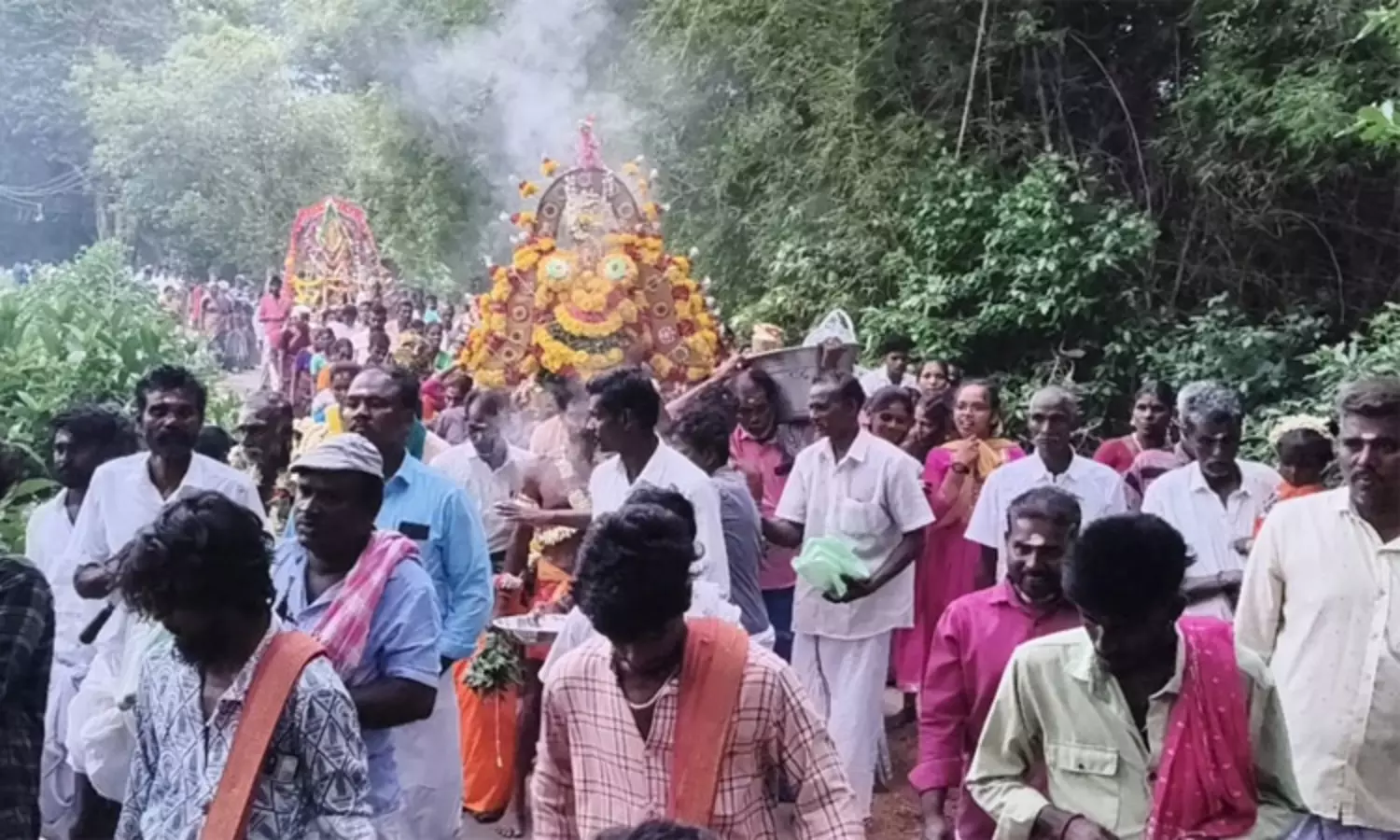 முன்னதாக கங்கணம் கட்டி விரதம் இருந்த பக்தர்கள் அசிக்காடு மணிக்குளக் கரையிலிருந்து சக்தி கரகம் முன் செல்ல பால் குடங்கள், காவடிகள் எடுத்து முக்கிய வீதிகள் வழியாக வாணவேடிக்கைகள், மேள வாத்தியங்கள் முழங்க கோவிலை வந்தடைந்தனர். பின்னர் அம்பாளுக்கு பக்தர்கள் கொண்டு வந்த பாலால் அபிஷேகம் செய்யப்பட்டு மகா தீபாராதனை காண்பிக்கப்பட்டது. இதில் திரளான பக்தர்கள் கலந்து கொண்டு சாமி தரிசனம் செய்தனர். தொடர்ந்து இரவு அம்பாள் வீதி உலா காட்சி நடைபெற்றது. அதனை தொடர்ந்து இன்று கஞ்சிவார்த்தல் நிகழ்ச்சி மற்றும் நாளை மஞ்சள் நீர் விளையாட்டுடன் விழா நிறைவுறுகிறது.