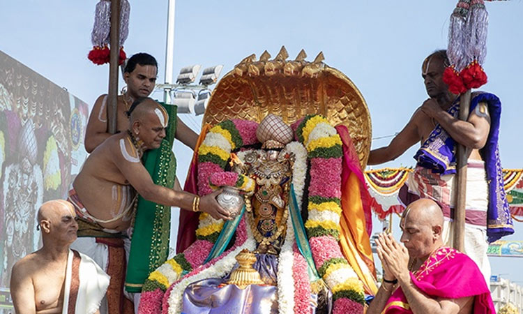 அதன்படி, அதிகாலை 5.30 மணி முதல் 8 மணி வரை ஏழுமலையான் சூரிய பிரபை வாகனத்தில் 4 மாட வீதிகளில் உலா வந்தார். கடும் குளிரையும் பொருட்படுத்தாமல் பல்லாயிரக்கணக்கான பக்தர்கள் 4 மாட வீதிகளில் காத்திருந்து ஏழுமலையானை தரிசனம் செய்தனர்.