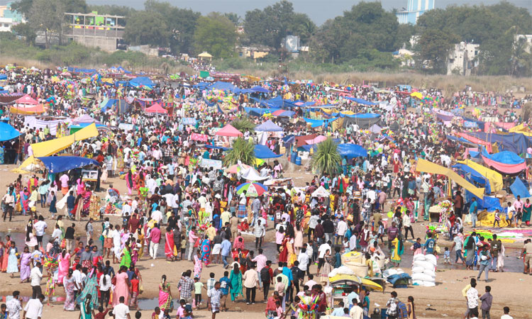 திருக்கோவிலூர் தென்பெண்ணை ஆற்றில் குவிந்திருந்த பொதுமக்கள்