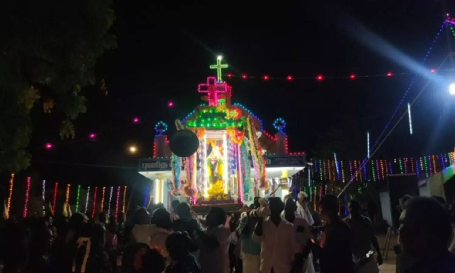 தொண்டி: புனித ஆசீர்வாதப்பர் ஆலய திருவிழா தேர்பவனி