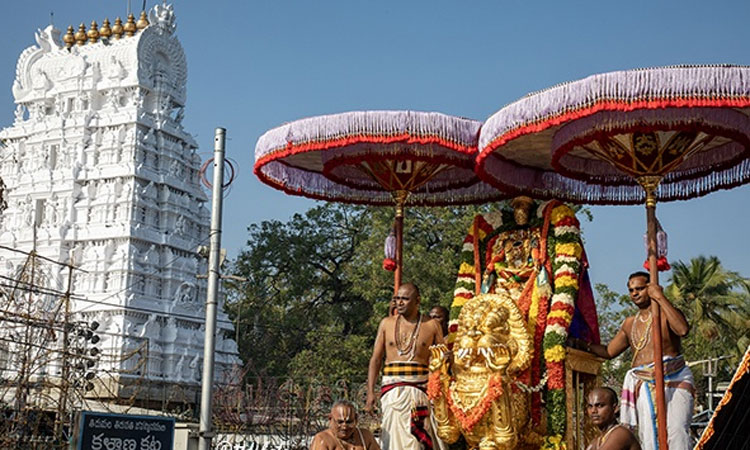 திருப்பதியை அடுத்த சீனிவாச மங்காபுரத்தில் உள்ள கல்யாண வெங்கடேஸ்வரர் கோவிலில் வருடாந்திர பிரம்மோற்சவ விழா விமரிசையாக நடைபெற்று வருகிறது. முதல் நாள் இரவில் பெரிய சேஷ வாகனத்தில் சுவாமி எழுந்தருளி மாட வீதிகளில் வலம் வந்து பக்தர்களுக்கு அருள்பாலித்தார். இரண்டாம் நாளான நேற்று காலையில் சின்ன சேஷ வாகனத்திலும், இரவில் அன்ன வாகனத்திலும் சுவாமி எழுந்தருளினார்.