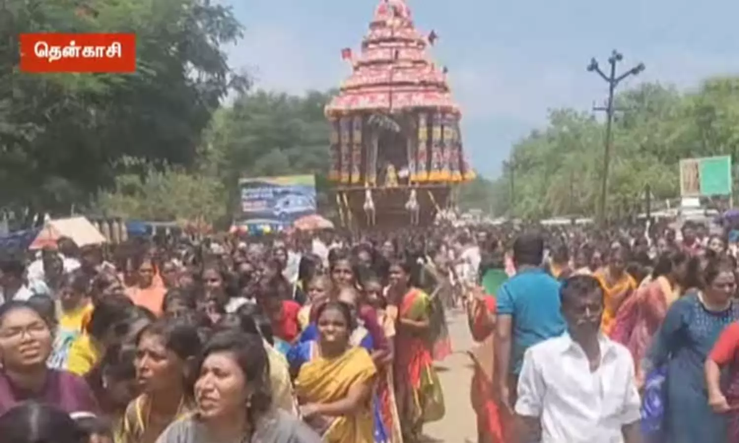 தென்காசி சிவசைலநாதர் கோவில் தேரோட்டம் - பெண்கள் மட்டும் இழுத்த அம்பாள் தேர்