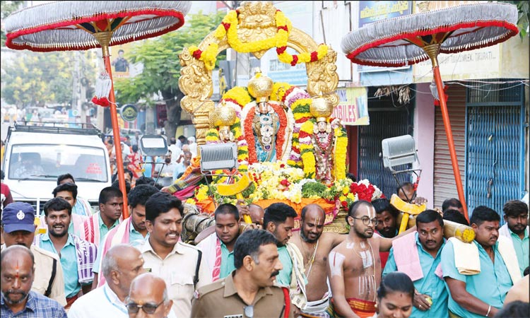 கோதண்டராமர் கோவிலில் இருந்து உற்சவர்கள் மேள தாளம், மங்கள வாத்தியங்கள் முழங்க ஊர்வலமாக சென்று திரும்பினர்.;