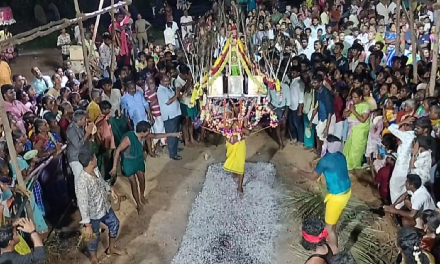 அதனைத் தொடர்ந்து தீ குண்டத்தில் பக்தர்கள் இறங்கி தீ மிதித்து அம்மனுக்கு நேர்த்திக்கடன் செலுத்தினர். பின்னர் அம்மன் வீதி உலா வந்து பக்தர்களுக்கு அருள்பாலித்தார். வீதியுலாவின் நிறைவில் அம்மனுக்கு சிறப்பு அலங்காரம் செய்யப்பட்டு தீபாராதனை காண்பிக்கப்பட்டு பிரசாதம் வழங்கப்பட்டது. விழாவில் ஏராளமான பக்தர்கள் கலந்து கொண்டு அம்மனை தரிசித்தனர்.