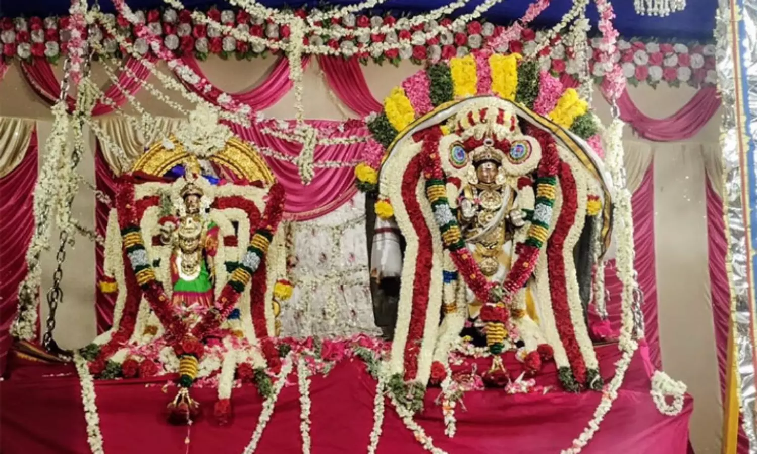 சிறப்பு யாக பூஜைகளுக்கு பின்னர் மாப்பிள்ளை அழைப்பு, மாலை மாற்றுதல், ஊஞ்சல் உற்சவம் உள்ளிட்ட திருமண சடங்குகள் நடந்தன. இதையடுத்து வேத மந்திரங்கள் முழங்க திருக்கல்யாண நிகழ்ச்சி நடந்தது. இதில் திரளான பக்தர்கள் கலந்து கொண்டு சுவாமி-அம்பாள் திருமணக் கோலத்தை தரிசனம் செய்தனர். நிகழ்ச்சி ஏற்பாடுகளை கோவில் நிர்வாகத்தினர் மற்றும் விழா குழுவினர் செய்திருந்தனர்.