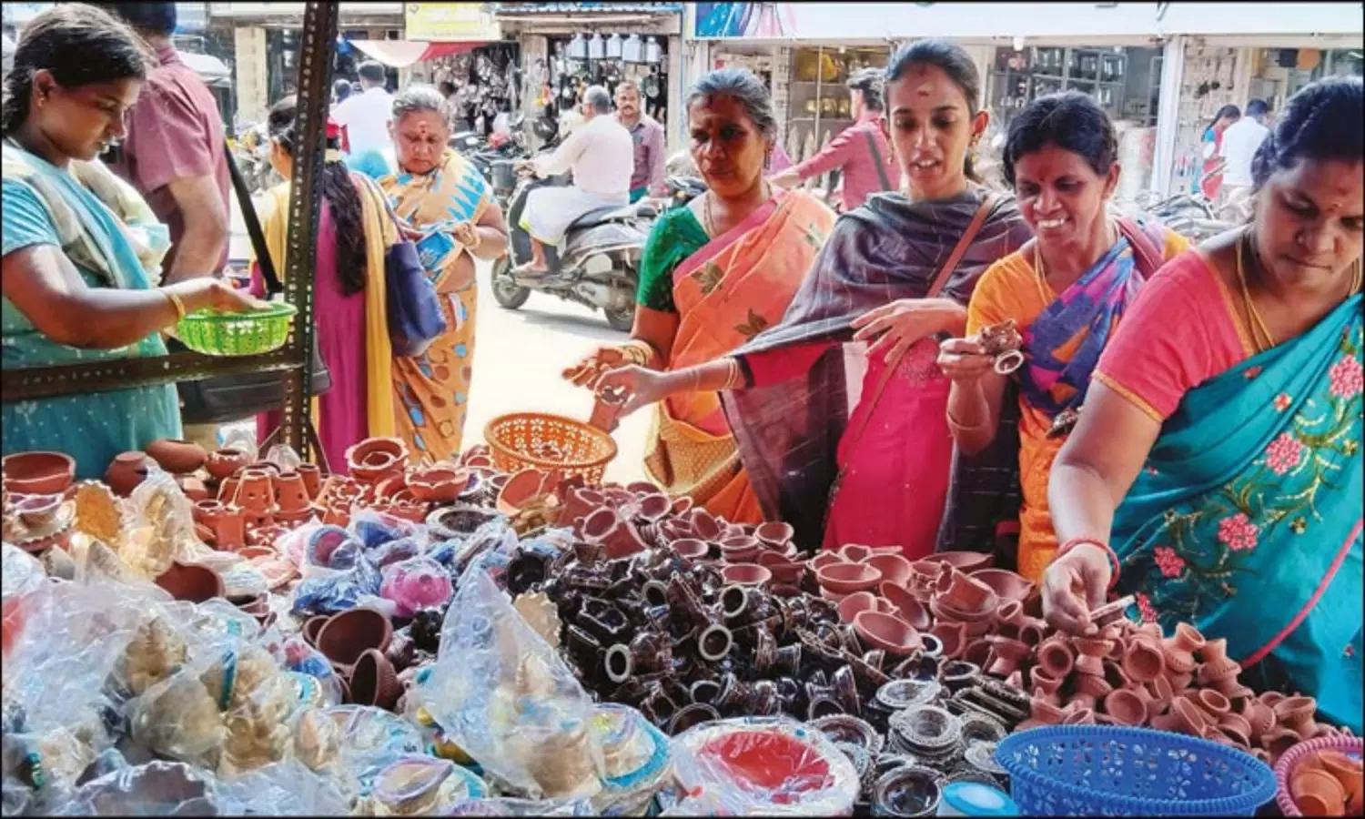 இதுகுறித்து குறிச்சியைச் சோ்ந்த மண்பாண்ட தொழிலாளா்கள் கூறுகையில், ‘‘குறிச்சி மண்பாண்ட கூட்டுறவுச் சங்கம் 1957-ம் ஆண்டு தொடங்கப்பட்டது. 150-க்கும் மேற்பட்டோா் இச்சங்கத்தில் உறுப்பினா்களாக உள்ளனா். மண்பானை, மண்சட்டிகள், டம்ளா்கள், பூந்தொட்டிகள் உள்பட 20-க்கும் மேற்பட்ட மண்பாண்டங்கள் தயாரிக்கப்படுகின்றன. ஆண்டுதோறும் காா்த்திகை மாதத்திற்காக அகல் விளக்குகள் ஜூலை முதல் நவம்பா் வரை தயாரிக்கப்படும். கன்னியாகுமரி, விருதுநகா், தூத்துக்குடி, சிவகங்கை, மதுரை உள்ளிட்ட மாவட்டங்களின் வியாபாரிகள் இங்கு வந்து மொத்தமாக கொள்முதல் செய்வது வழக்கம். இந்த ஆண்டு பெய்த தொடா் மழையால் கடைசிகட்ட அகல்விளக்குகள் உற்பத்தி பாதிக்கப்பட்டது.