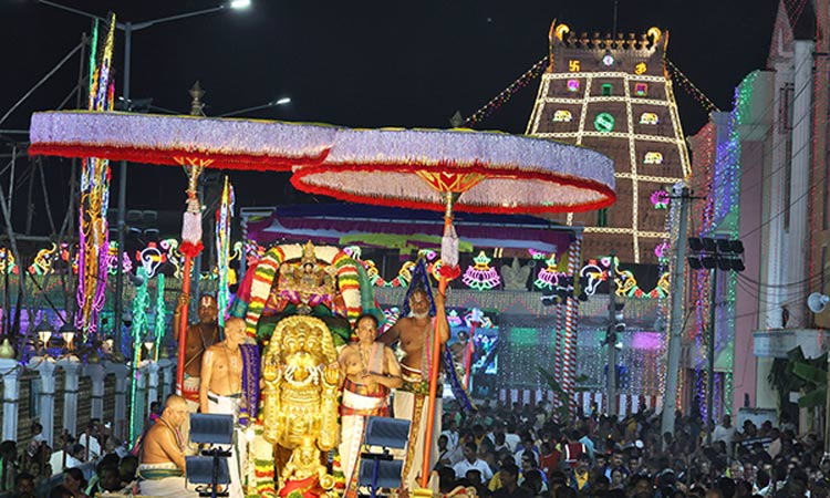 வாகன வீதிஉலா முன்னால் பல்வேறு கலைக் குழுக்கள் நடத்திய கலாசார நிகழ்ச்சிகள் பக்தர்களை கவர்ந்தன. அதில் கோஷாதி நாட்டுப்புற நடனத்தில் பிரதமர் ராஷ்ட்ரிய பால் புரஷ்கார் விருது பெற்ற கவுரவ்ரெட்டி பங்கேற்றார். கோலாட்டம், பரத நாட்டியம், கோண்டு நிருத்தியம், மணிப்பூர் பாரம்பரிய நடனம் ஆகியவை நடந்தன. கேரள செண்டை மேளம், மங்கள வாத்தியங்கள் இசைக்கப்பட்டன.
