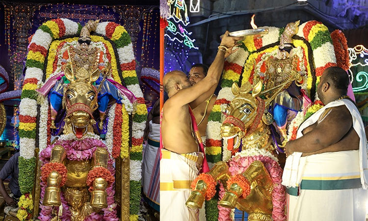 சின்ன சேஷ வாகனம், பெரிய சேஷ வாகனம், ஹம்ச வாகனம், முத்தையாபு பாண்டிரி வாகனம் மற்றும் சிம்ம வாகன சேவை, கல்ப விருட்ச வாகன சேவை, ஹனுமந்த வாகன சேவை, சர்வ பூபால வாகனம், கருட வாகனம், சூரிய பிரபை வாகனம், சந்திர பிரபை வாகன சேவையைத் தொடர்ந்து வாகன சேவையின் இறுதி நாளான நேற்று இரவு அஸ்வ வாகன சேவை நடைபெற்றது.