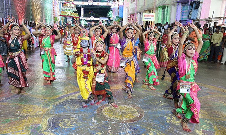 வாகன சேவைக்கு முன்னால் பல்வேறு நடன கலைஞர்கள், சிறுவர்-சிறுமிகளின் கலைநிகழ்ச்சி நடைபெற்றது.;