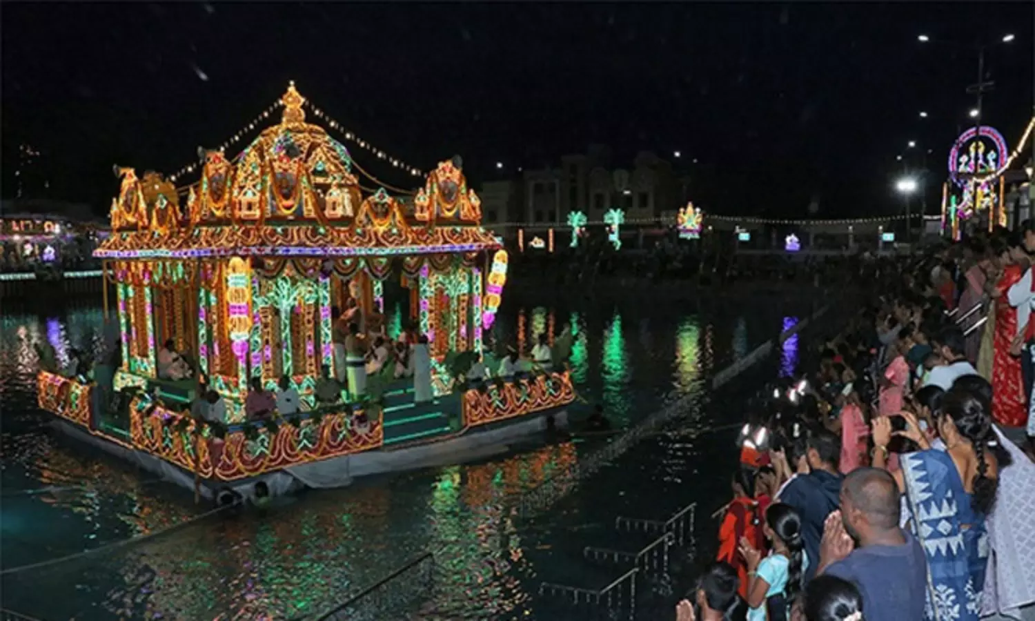 திருச்சானூர் தெப்போற்சவம்: அலங்கார தெப்பத்தில் எழுந்தருளி பவனி வந்த பத்மாவதி தாயார்