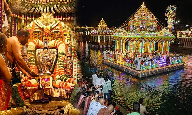 திருமலை தெப்போற்சவம்: ஸ்ரீவாரி புஷ்கரணியில் 5 முறை வலம் வந்து அருள்பாலித்த மலையப்ப சாமி