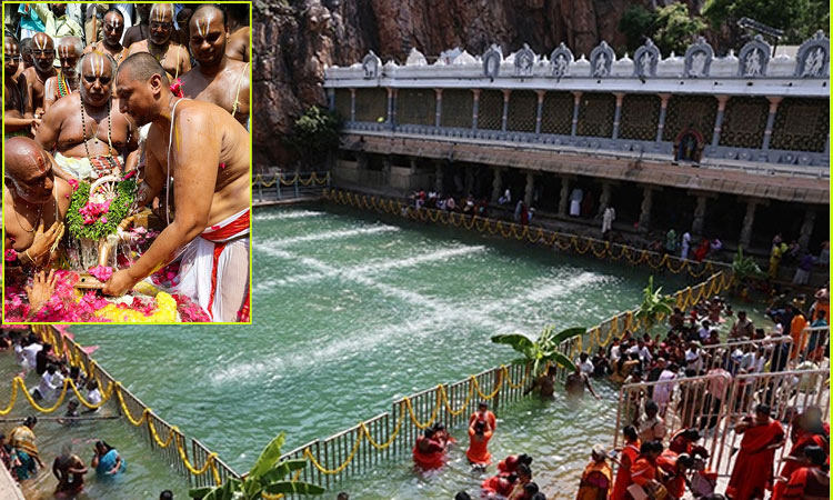 திருப்பதி பிரம்மோற்சவம்.. ஆழ்வார் தீர்த்தத்தில் விமரிசையாக நடைபெற்ற சக்கரஸ்நானம்