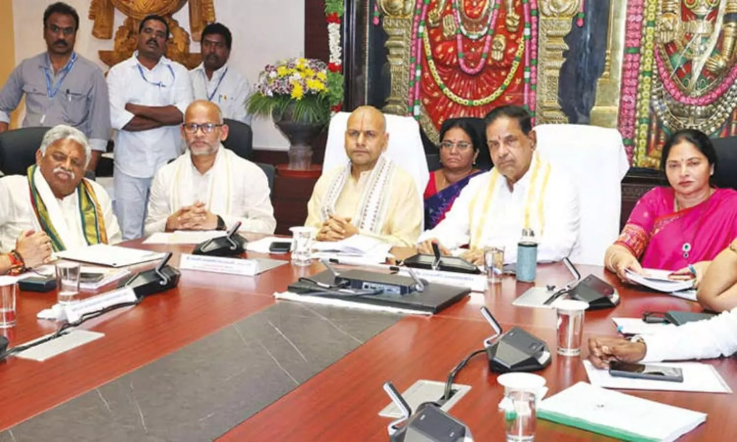 கூட்டத்தில் தேவஸ்தான வாரிய உறுப்பினர்கள், கூடுதல் செயல் அலுவலர் சி.எச்.வெங்கையா சவுத்ரி, பாதுகாப்பு அதிகாரி முரளிகிருஷ்ணா மற்றும் அதிகாரிகள் கலந்து கொண்டனர்.